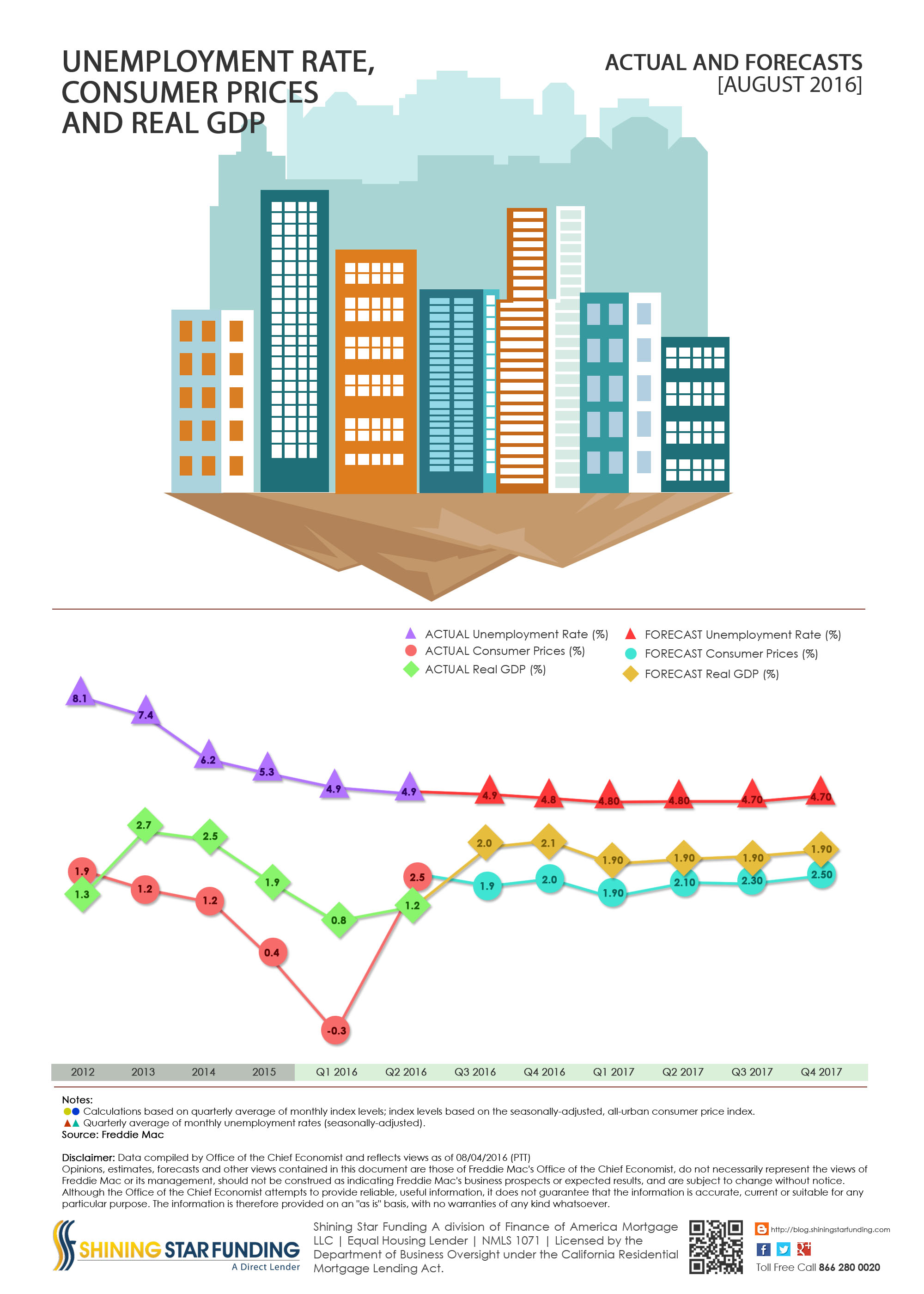 Freddie Mac Unemployment Rate – Consumer Prices – Real GDP – Actual and Forecasts – August 2016 August 19, 2016 2000 × 2800 Freddie Mac Unemployment Rate – Consumer Prices – Real GDP – Actual and Forecasts – August 2016